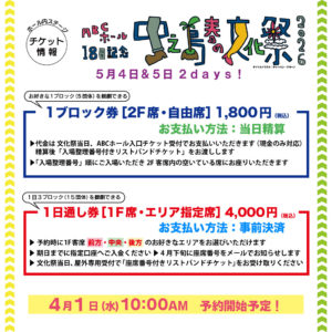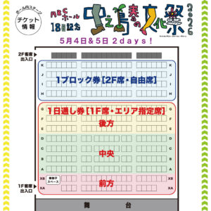 ◎1日通し券[1F客席・エリア指定席]:4,000円(税込)【事前決済】