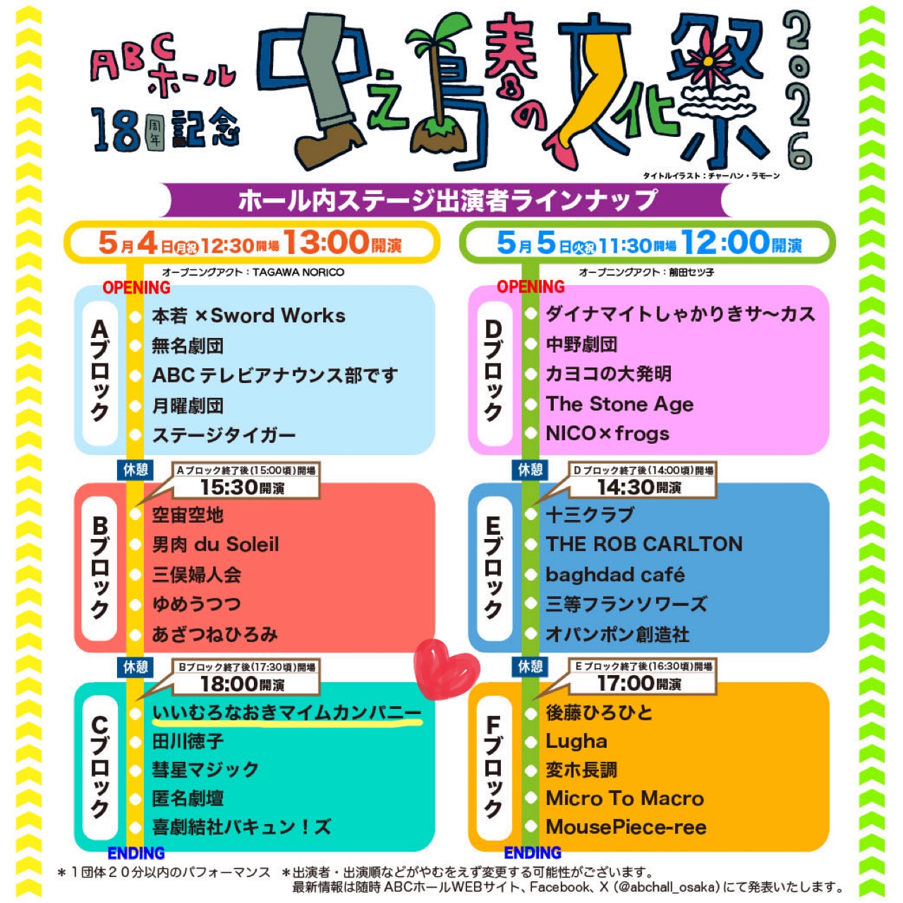 Aブロック:本若×Sword Works/無名劇団/ABCテレビアナウンス部です/月曜劇団/ステージタイガー